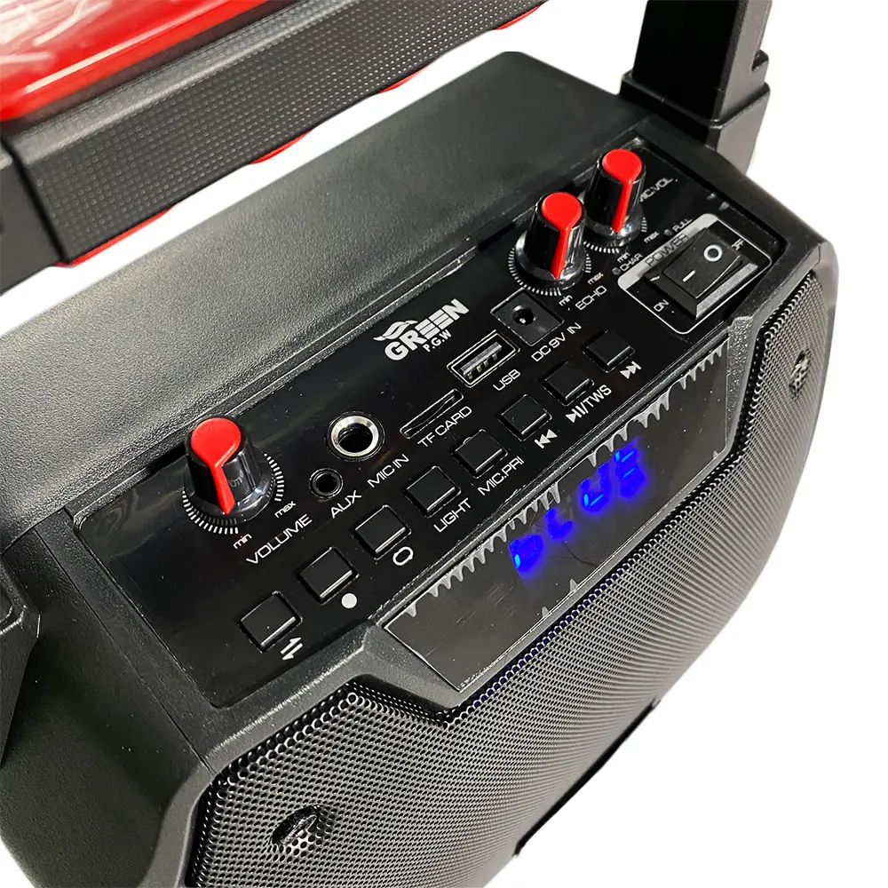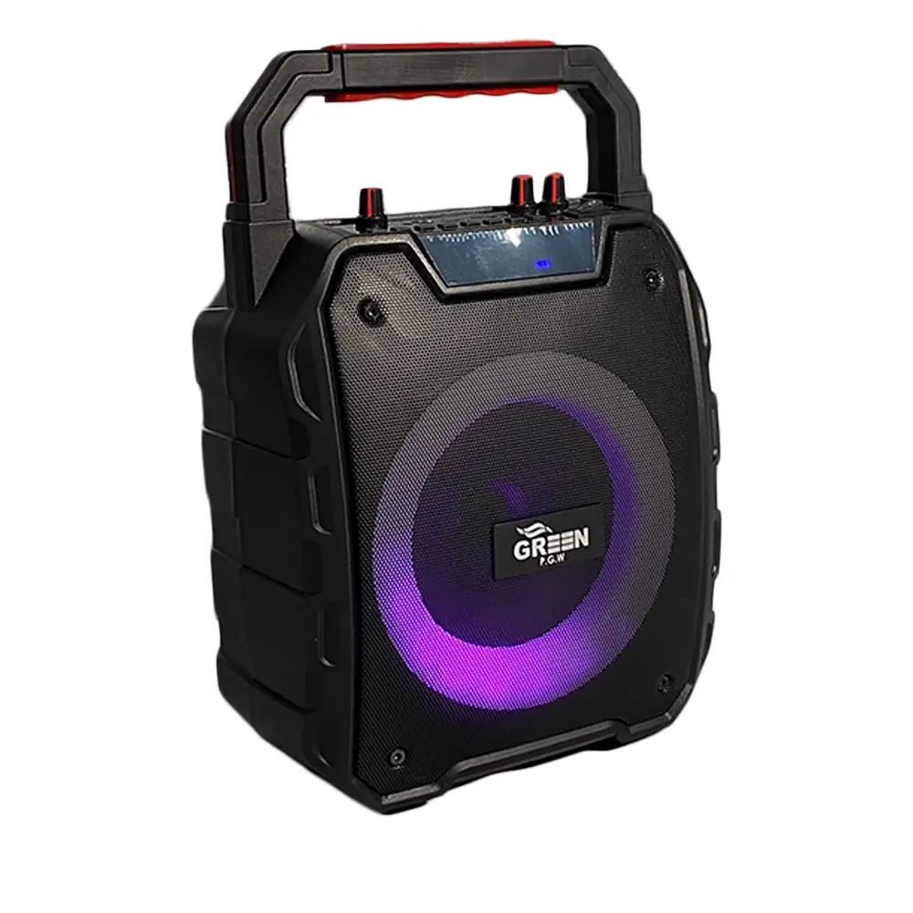 اسپیکر قابل حمل گرین بلوتوثی مدل GSS-615 یکی از بهترین گزینهها برای علاقمندان به موسیقی است. این اسپیکر با حداکثر توان خروجی 150 وات و قدرت صدای 15 وات RMS، تجربهای شگفتانگیز از پخش موسیقی را ارائه میدهد. طراحی کاربرپسند و وزن مناسب این محصول، امکان جابجایی آسان را برای شما فراهم میکند. وجود درگاههای متنوع مانند USB، AUX و بلوتوث (نسخه 5.0) به شما این امکان را میدهد که به راحتی به دستگاههای مختلف متصل شوید و از پخش موسیقی با کیفیت بالا لذت ببرید. همچنین، ورودی میکروفون به شما اجازه میدهد تا به راحتی در مهمانیها یا مراسم ها به اجرای زنده بپردازید. با قابلیت شارژدهی حداکثر 8 ساعت، شما میتوانید بدون نگرانی از تمام شدن باتری، مدت زمان طولانیتری به موسیقی گوش دهید.